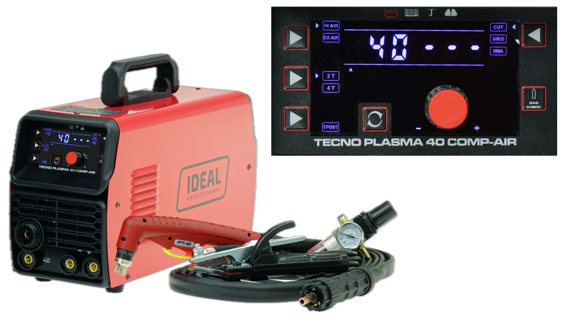 TECNO PLASMA 40 COMP-AIR jest profesjonalnym urządzeniem do cięcia plazmowego oraz spawania metodą MMA. Umożliwia cięcie bez zniekształceń: stali, stali nierdzewnej, aluminium, mosiądzu i miedzi. Sterowana elektronicznie, płynna regulacja prądu cięcia. Urządzenie doskonale sprawdza się zarówno w pracach warsztatowych jak i podczas prac terenowych.