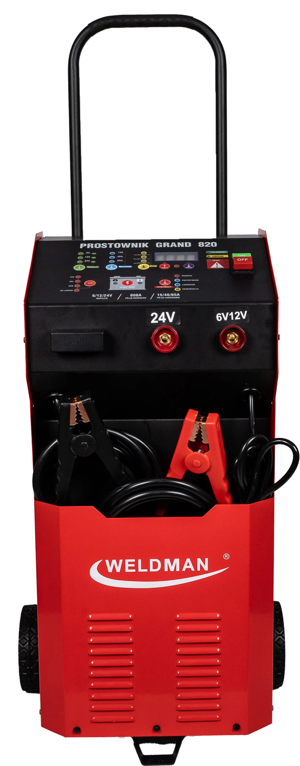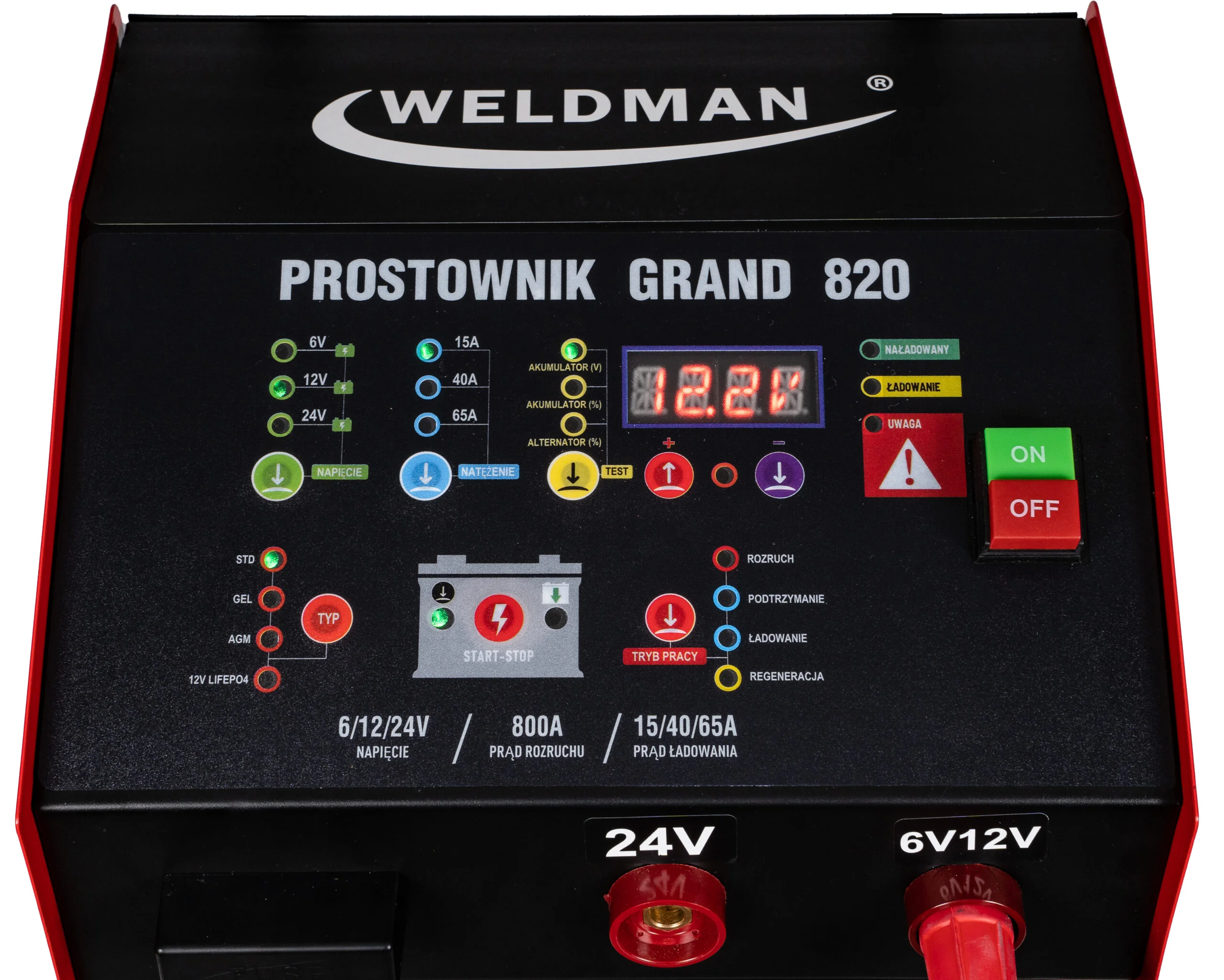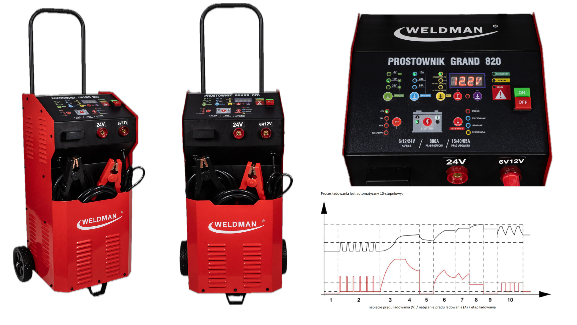 Inteligentne prostowniki mikroprocesorowe GRAND 820 są przeznaczone do ładowania i rozruchu wszystkich typów akumulatorów kwasowo-ołowiowych 6/12/24V (w tym WET/MF/CA/EFB/GEL/AGM) oraz 12V akumulatorów litowo-jonowych (4 ogniwowe LiFePO4).