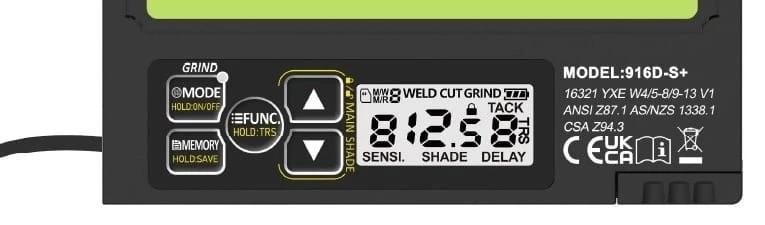 Do wyboru są tryby pracy: spawanie WELD 9-13, WELD 9-14 (w zależności od modelu), szlifowanie GRIND, cięcie plazmowe CUT oraz tryb ciemny DARK. W trybie DARK ustawia się stopień zaciemnienia z pełnego zakresu i pozostaje on aktywny, dopóki użytkownik go nie przełączy.