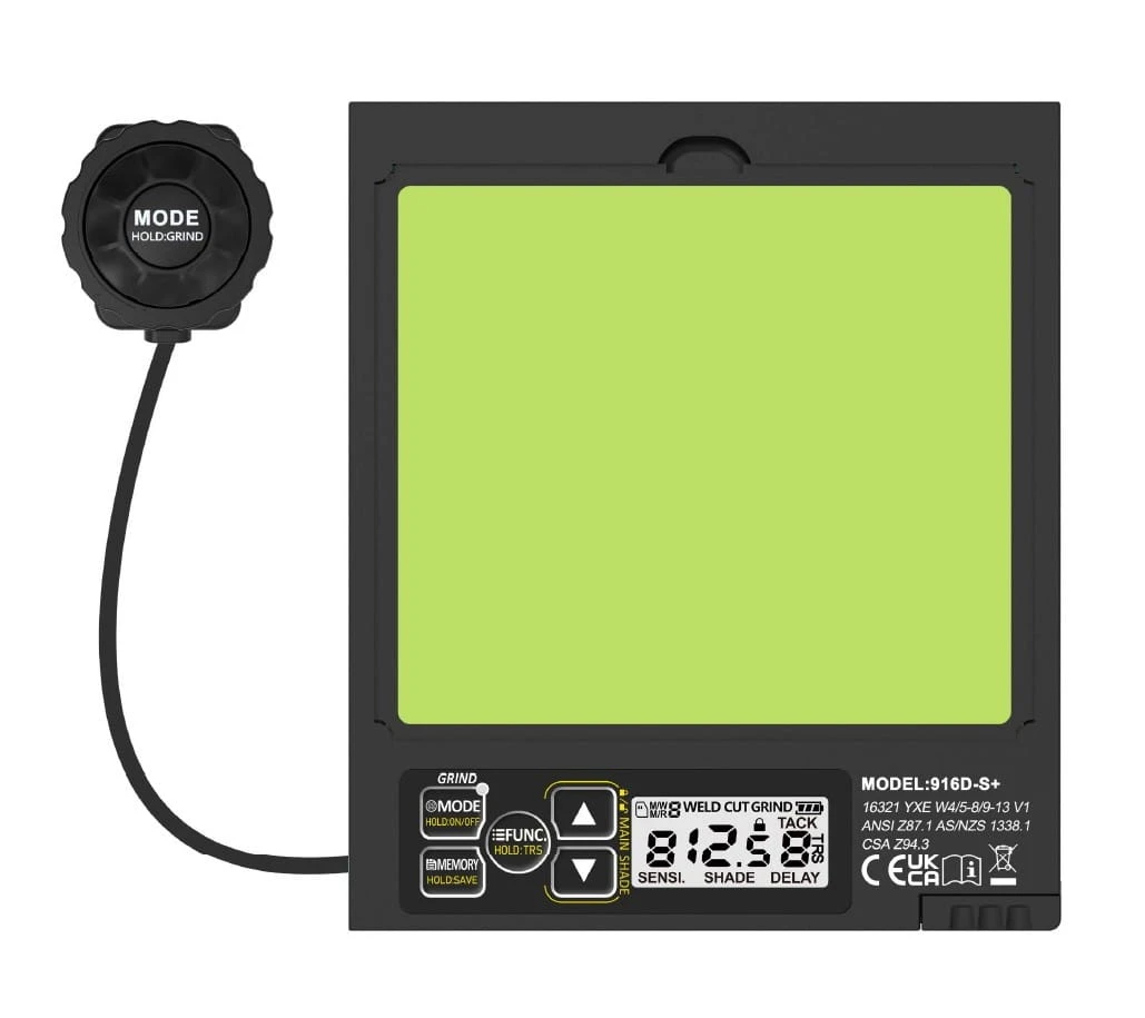 Przyłbica automatyczna APS Pro 916D-S+ BLUE TrueView+ ze zmiennym stopniem ochrony DIN 3 / 4-8 / 9-14, zmiennym czasem rozjaśniania, możliwością ustawienia wrażliwości czujników