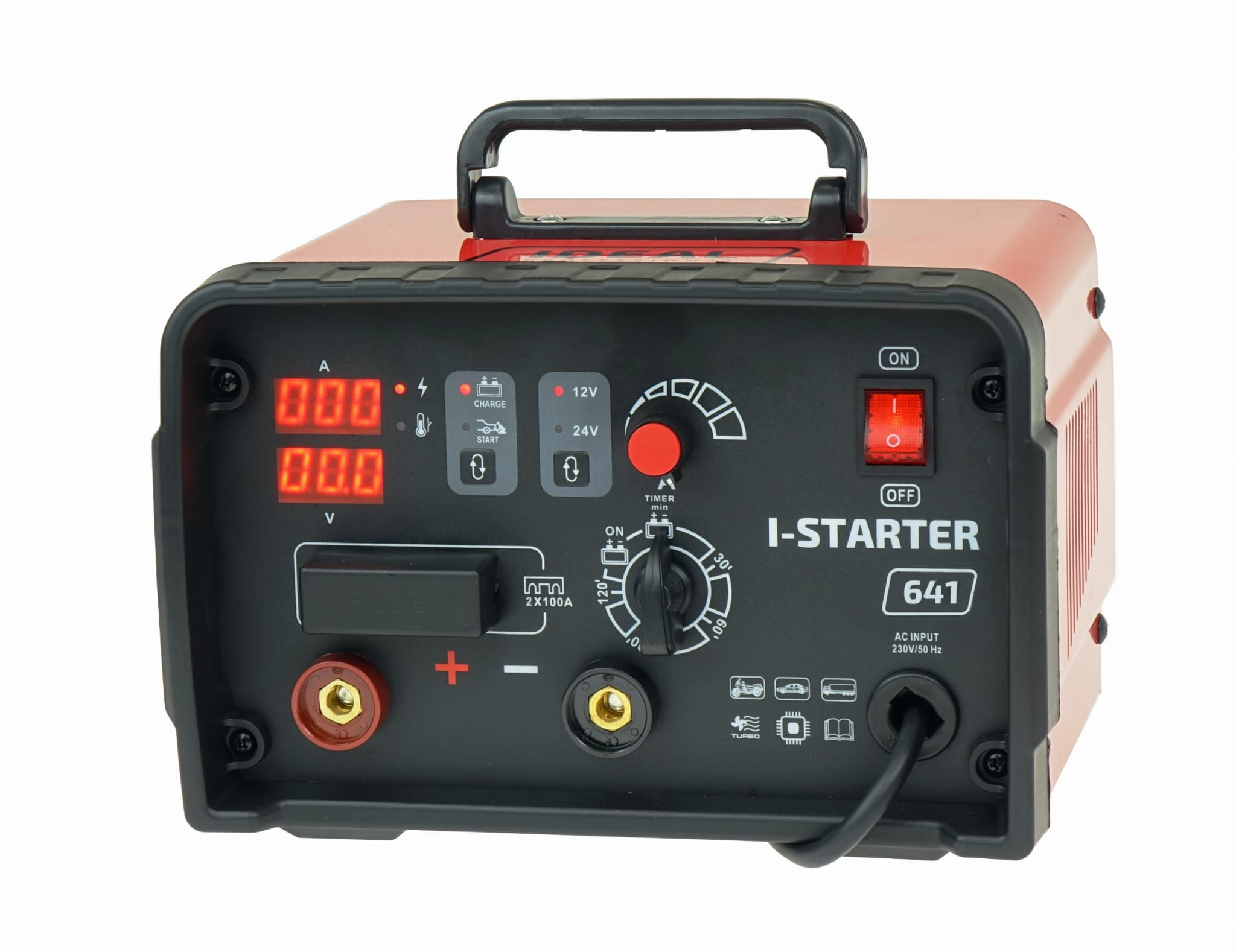 IDEAL I-STARTER 641 jest inwertorowym prostownikiem do ładowania 12 i 24 woltowych akumulatorów kwasowych, posiadający funkcję rozruchu samochodów z silnikami benzynowymi oraz diesla.