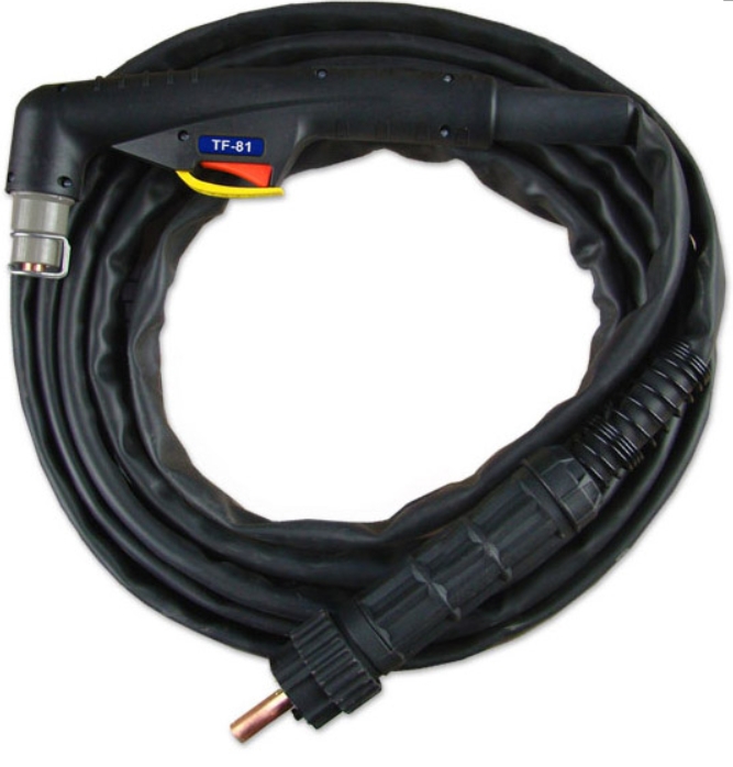Urządzenie posiada uchwyt 6m standardu TRAFIMET z zajarzaniem jonizacyjnym HF łukiem pilotującym oraz wbudowany zespół przygotowania powietrza z reduktorem i manometrem umożliwiający regulację i kontrolę ciśnienia powietrza z panelu sterowniczego.
