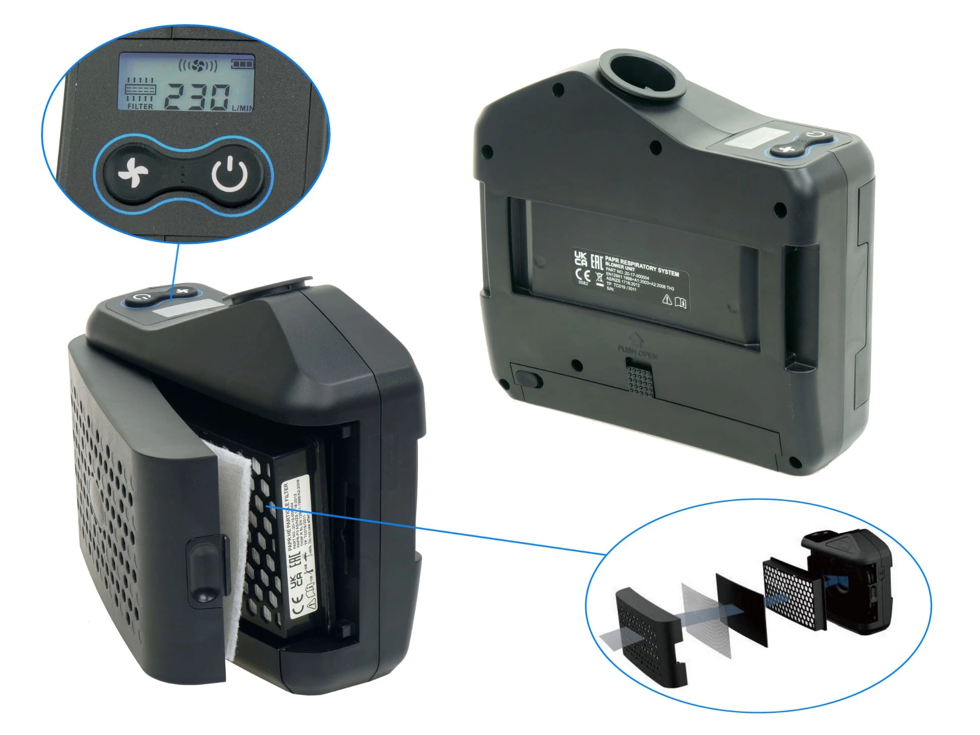 Profesjonalny 3-stopniwy system nawiewu AIR10v2 sterowany LED-owym panelem znacząco poprawia komfort pracy oraz kontrole nad zanieczyszceniem filtra.