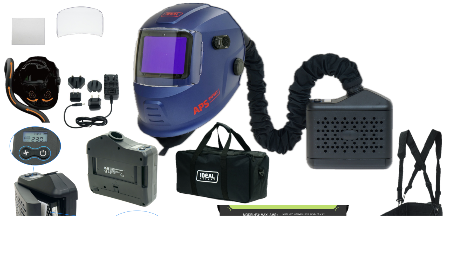 Przyłbica automatyczna z nawiewem APS Expert P31 AIR10V2 X1 BLUE MATT ze zmiennym stopniem ochrony DIN 3 / 4-8 / 9-13, zmiennym czasem rozjaśniania i możliwością ustawienia wrażliwości czujników.