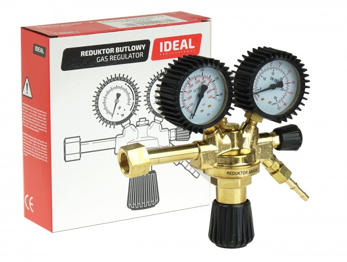Fabrycznie nowy. Reduktor ciśnienia wyposażony w dwa manometry. Pierwszy wskazuje ciśnienie w butli, a drugi ciśnienie robocze. Gwint pasuje do wszystkich komercyjnie produkowanych butli z zaworem zewnętrznym.