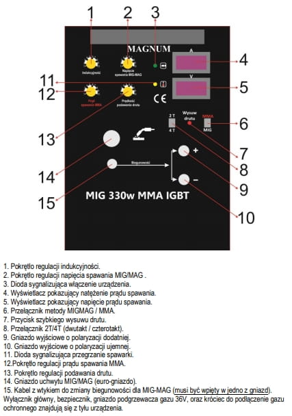 rządzenie MIG 330w MMA IGBT posiada możliwość regulacji indukcyjność, która optymalizuje charakterystykę dynamiczną łuku w zależności od grubości spawanego materiału. Wartość indukcyjności wpływa na kształt spoiny, jej szerokość, głębokość wtopienia oraz ilość rozprysków. Półautomat dedykowany jest do spawania stali niskowęglowej, niskostopowej, stali stopowych oraz aluminium i jego stopów.