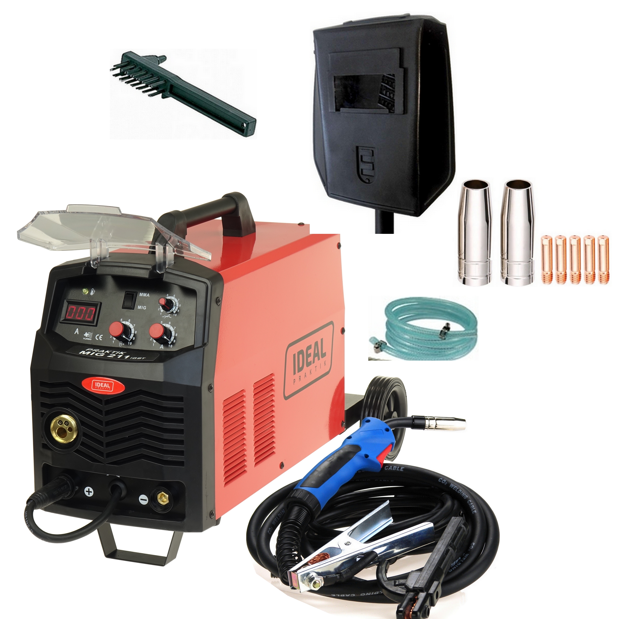 Półautomat spawalniczy zasilany jednofazowo PRAKTIK MIG 211 wykonany w technologii inwertorowej IGBT do spawania metodą MIG/MAG (w osłonie gazu) lub FLUX (bez osłony gazu) oraz do spawania elektrodami otulonymi prądem stałym (DC).