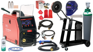 ⏩ FCAW - możliwość spawania drutem rdzeniowym bez użycia butli z gazem. Sam drut (FLUX) wypełniony jest substancją wytwarzającą gazy podczas spawania.