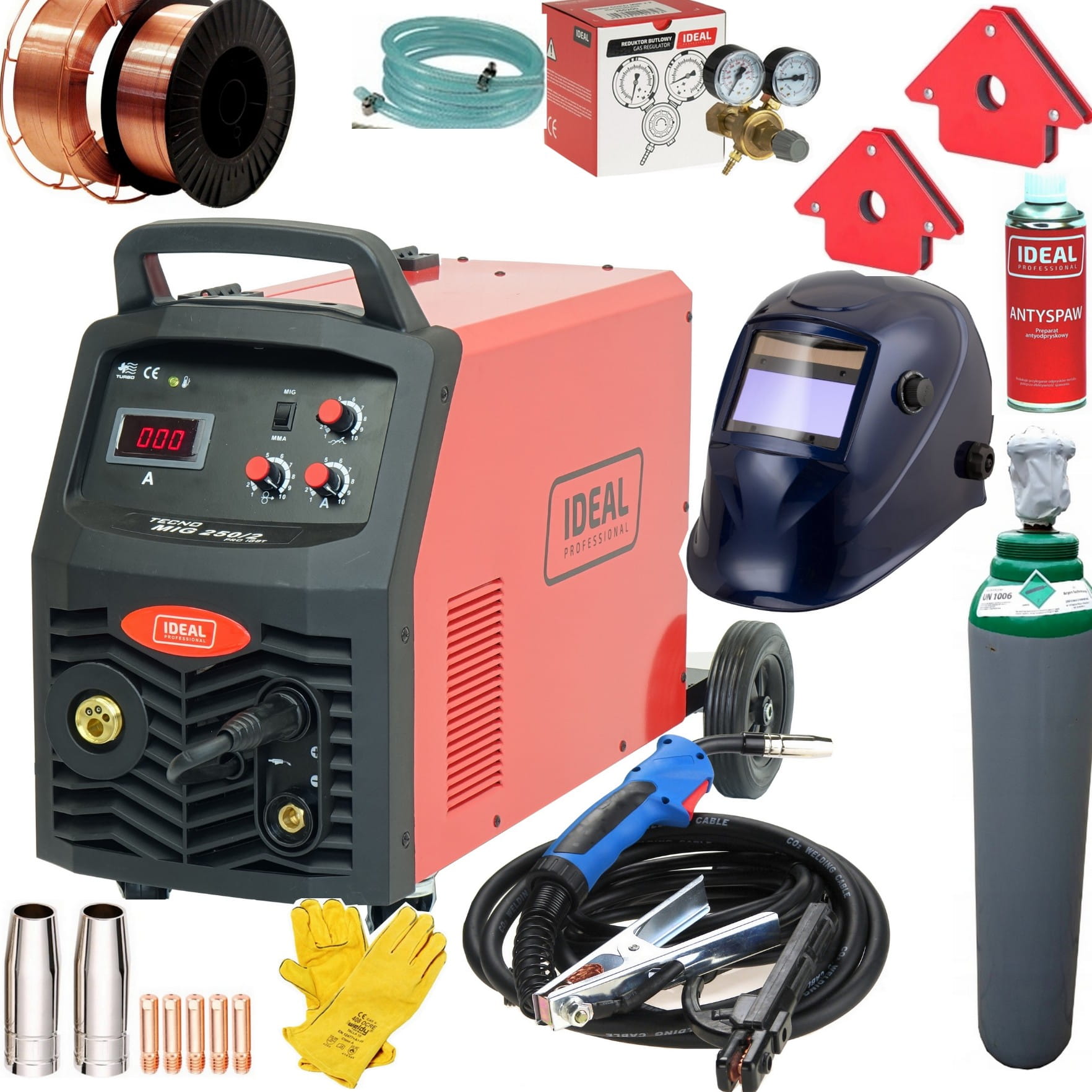 - Zakres regulacji prądu spawania: 30 - 250 A