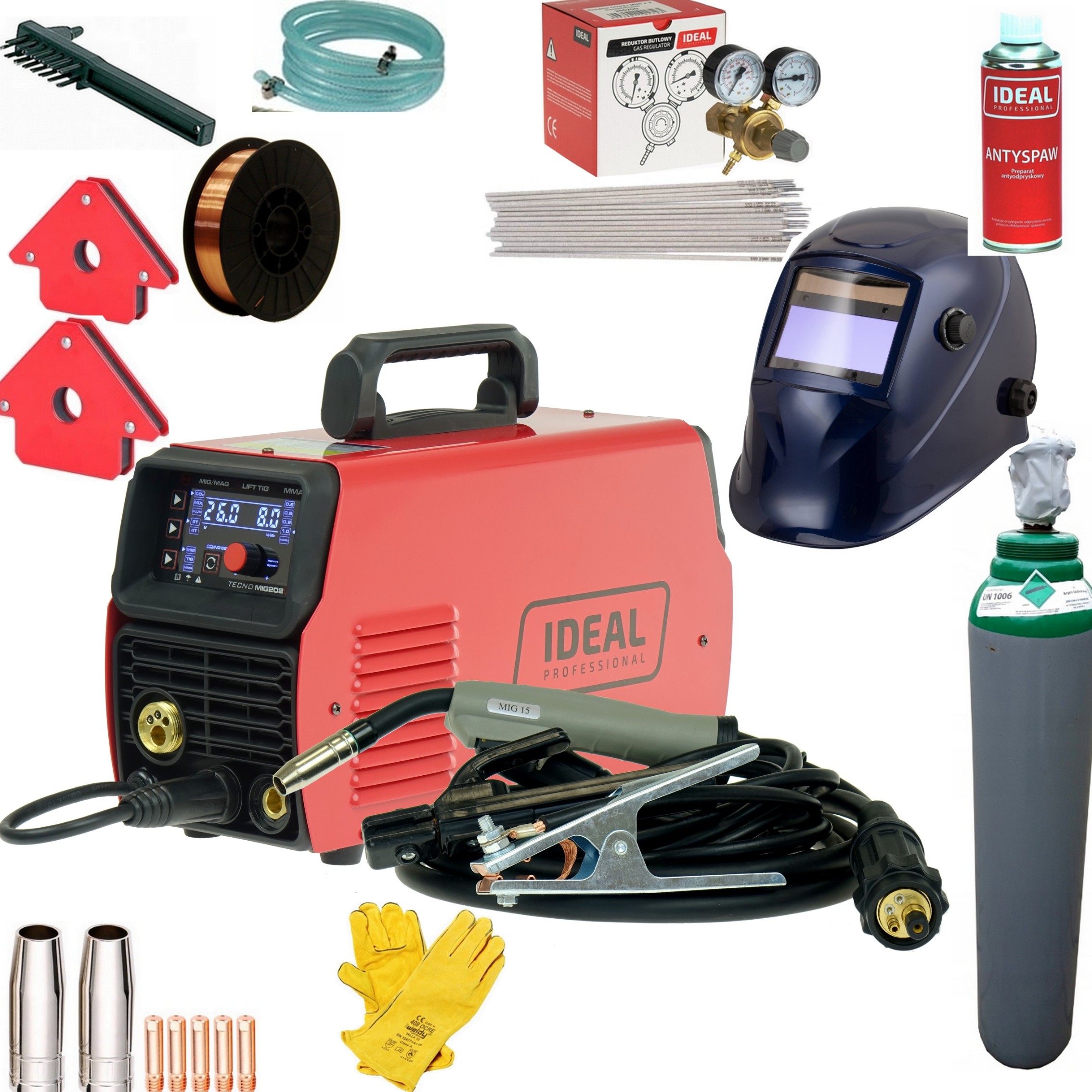 Półautomat spawalniczy zasilany jednofazowo IDEAL TECNOMIG 202 Synergia wykonany w technologii inwertorowej IGBT do spawania metodą MIG/MAG (w osłonie gazu) lub FLUX (bez osłony gazu) oraz do spawania elektrodami otulonymi prądem stałym (DC).