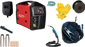 Półautomat spawalniczy zasilany jednofazowo MIDI MIG 220 wykonany w technologii inwertorowej IGBT do spawania metodą MIG/MAG (w osłonie gazu) lub FLUX (bez osłony gazu) oraz do spawania elektrodami otulonymi prądem stałym (DC).