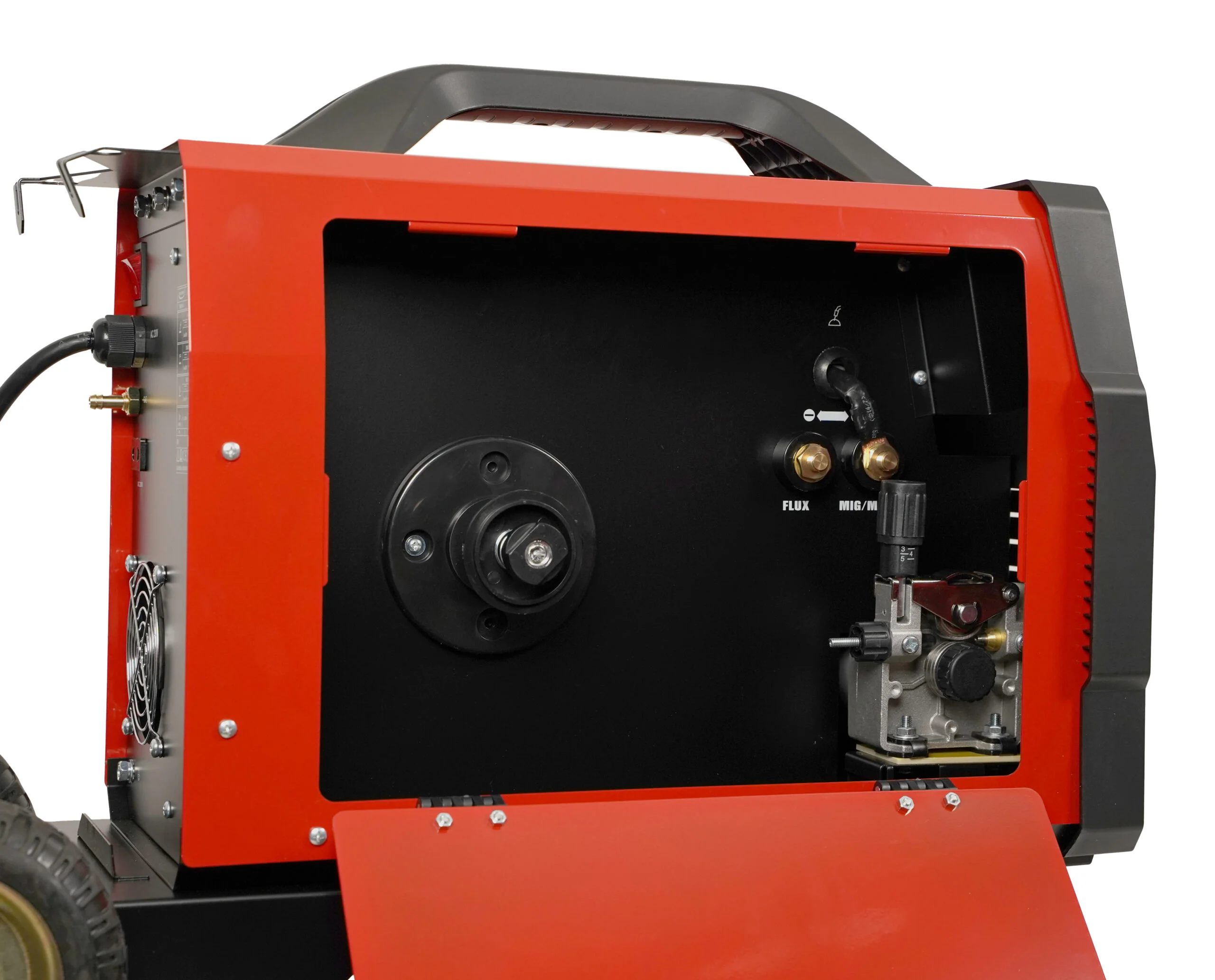 ✔️ FCAW – Spawanie Drutem Rdzeniowym Funkcja FCAW umożliwia spawanie drutem rdzeniowym bez gazu, co jest szczególnie przydatne podczas pracy w terenie. Sam drut wypełniony jest substancją, która wytwarza gazy ochronne.