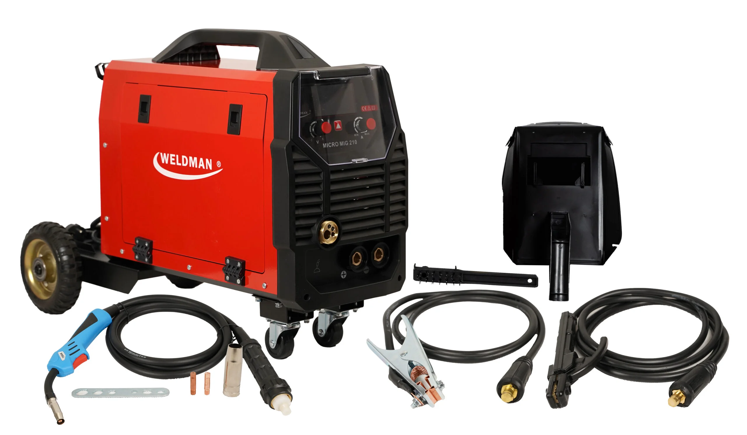 ✅ Spawaj Czterema Metodami z Weldman MICRO MIG 210 Weldman MICRO MIG 210 to wszechstronny półautomat spawalniczy, który łączy w sobie nowoczesną technologię inwertorową IGBT i niezawodność działania.