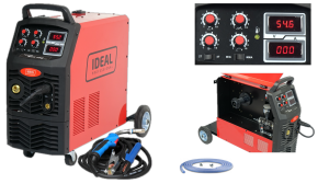 Profesjonalny inwertorowy półautomat spawalniczy do spawania metodą MIG-MAG drutem spawalniczym w osłonie gazu oraz metodą MMA. Prąd spawania 280A. Zasilanie 400V. Średnica drutu spawalniczego 0,6-1,2mm. Podajnik drutu 4-rolkowy