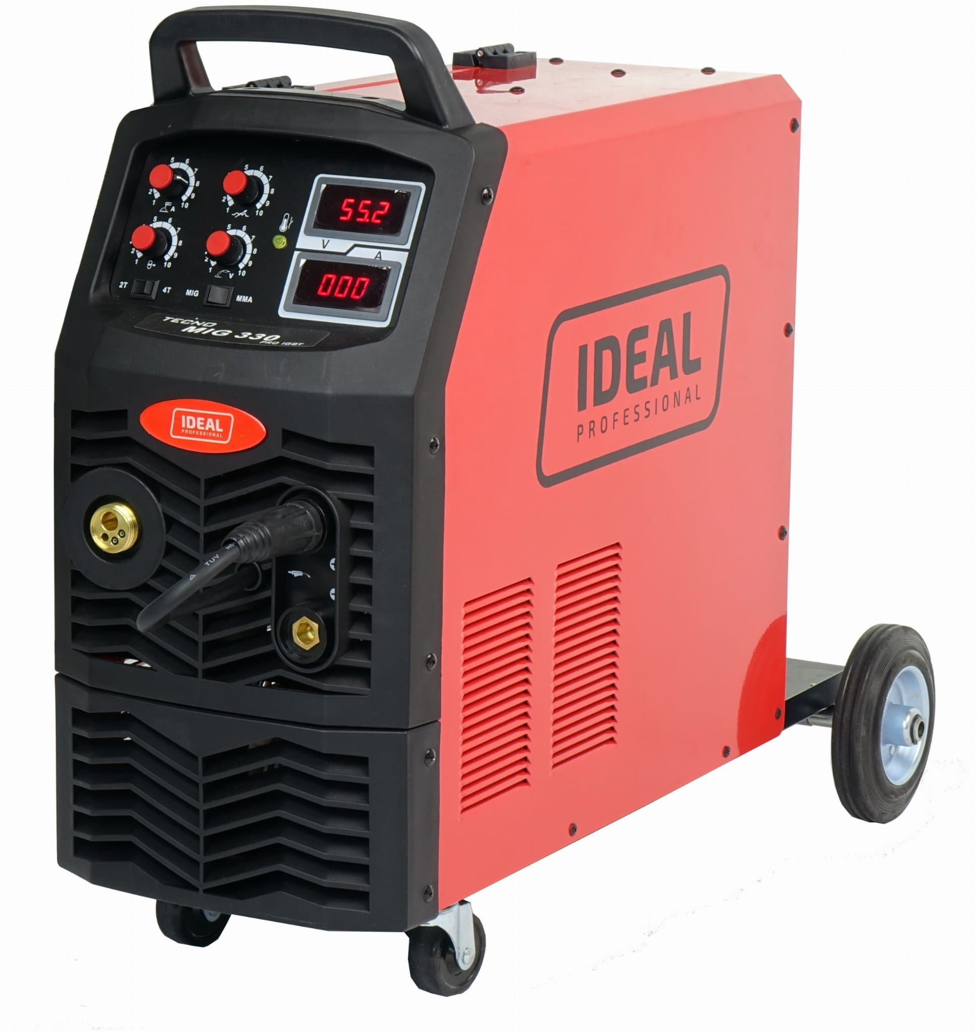 TECNO MIG 330 MMA wyposażony jest w miernik cyfrowy (woltomierz, amperomierz) co pozwala na bieżąco kontrolować parametry spawania.