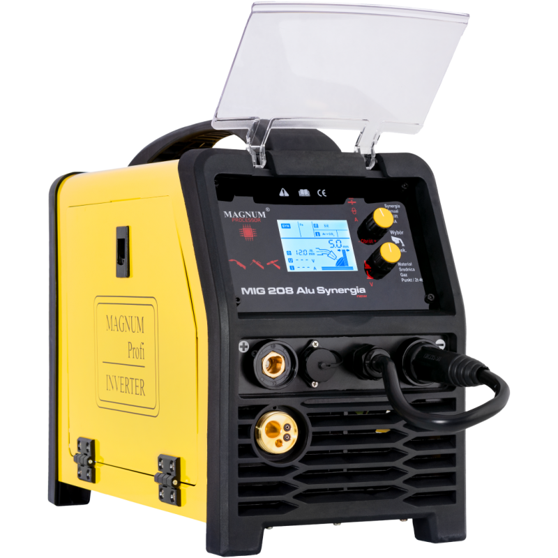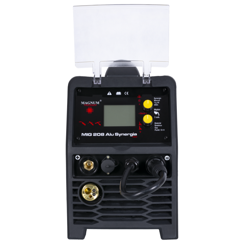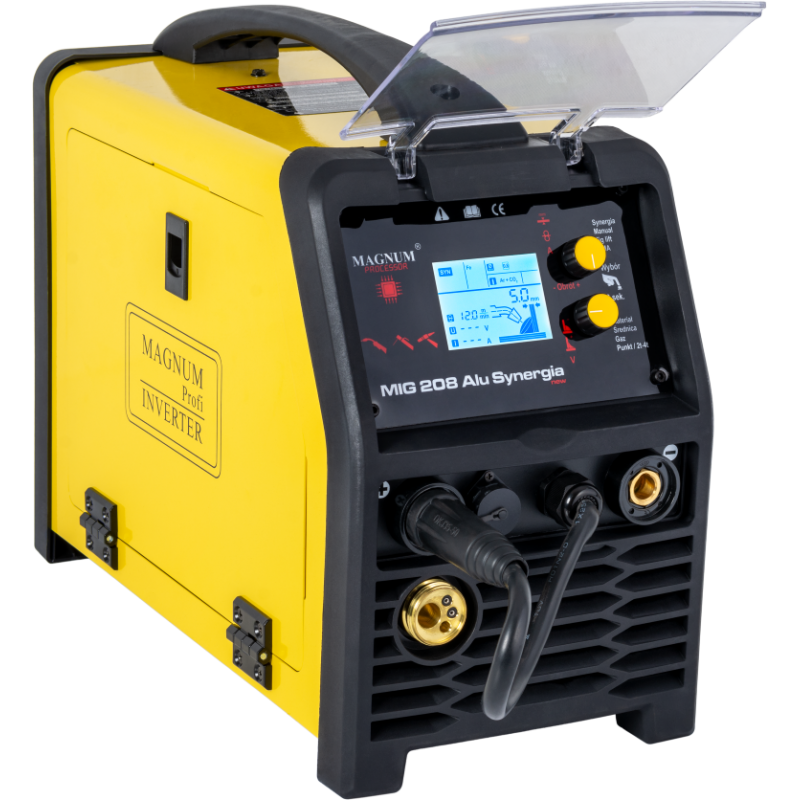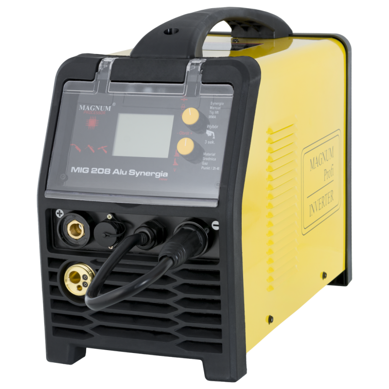 Urządzenie MAGNUM MIG 208 Alu Synergia jest profesjonalnym, synergicznym półautomatem spawalniczym, przeznaczonym do ręcznego, elektrycznego spawania stali niskowęglowej, niskostopowej (MAG), stali stopowych oraz aluminium i jego stopów (MIG).