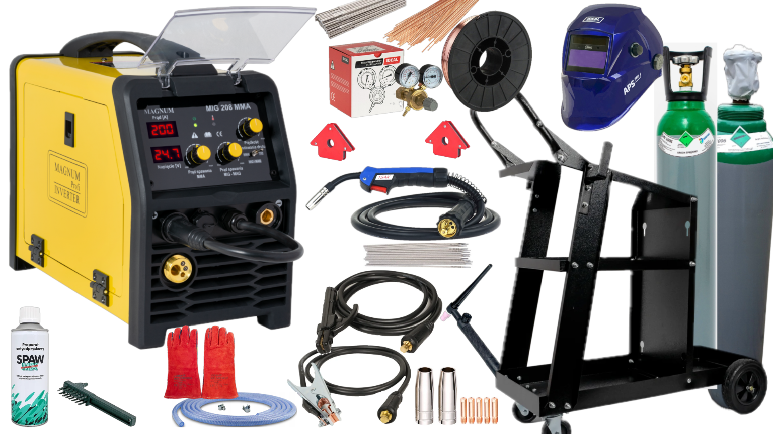 •Profesjonalny półautomat MAGNUM MIG 208 MMA – MIG/MAG, MMA oraz TIG Lift z jednofazowym zasilaniem 230 V.