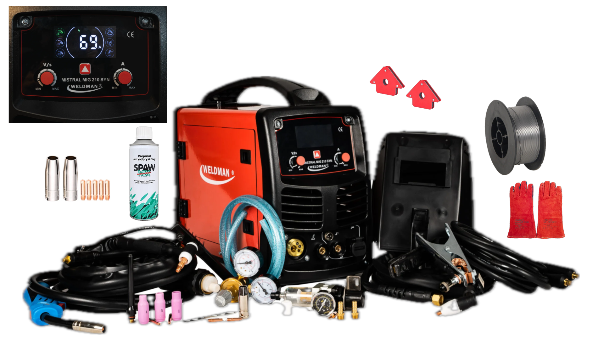 ✅ Spawaj Trzema Metodami z Weldman MISTRAL MIG 210 to wszechstronny półautomat spawalniczy oraz przecinarka plazmowa, który łączy w sobie nowoczesną technologię inwertorową IGBT i niezawodność działania.
