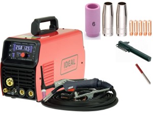 - Zakres regulacji prądu spawania: 50 - 200 A (MIG) / 10 - 160 A (MMA) / 10 - 200 A (TIG)
