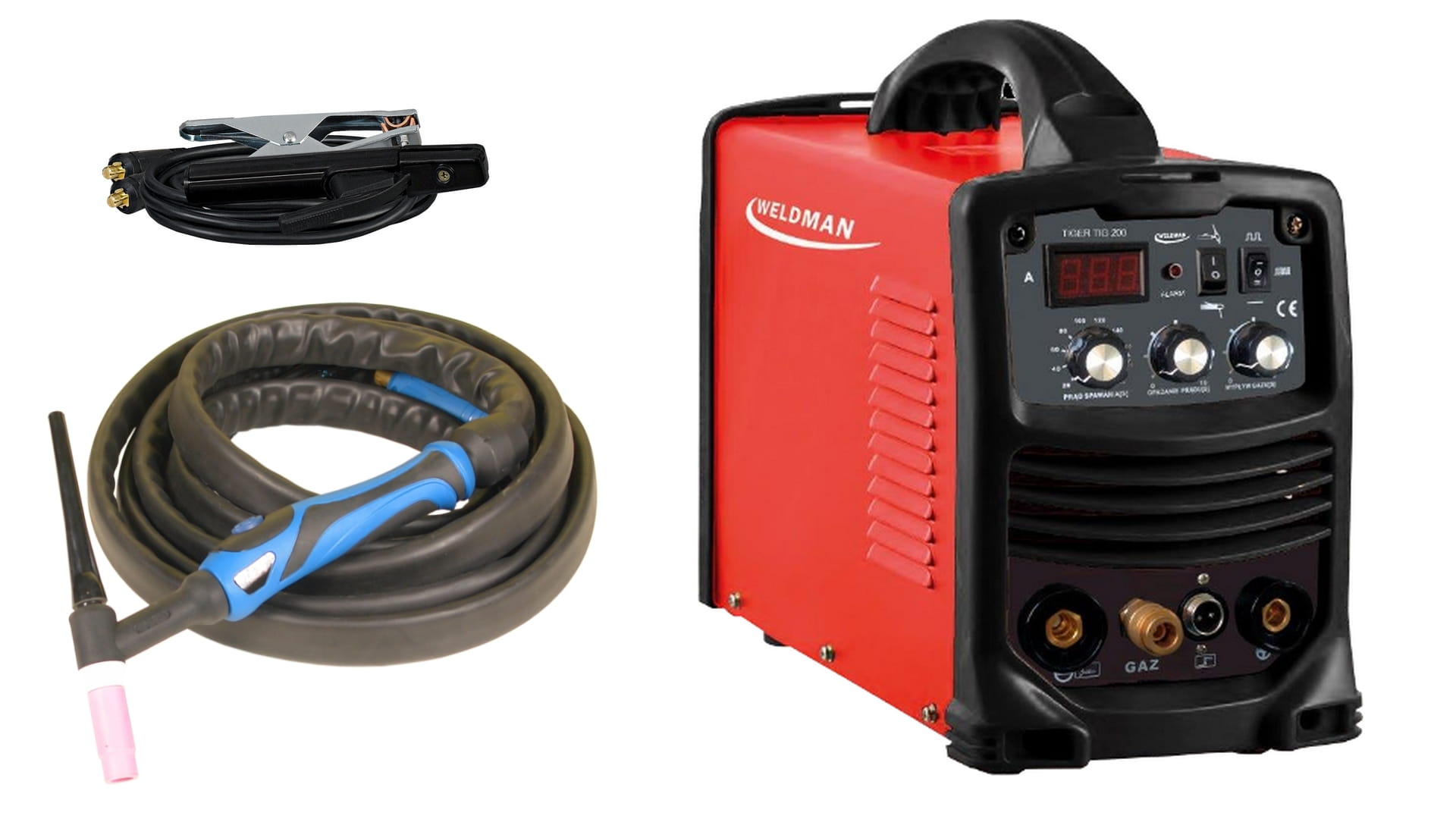 Spawarka inwerterowa Tiger tig 200 PULSE - wyposażona w niezbędne okablowanie. Urządzenie dedykowane do pracy w warsztatach naprawczych oraz produkcyjnych.