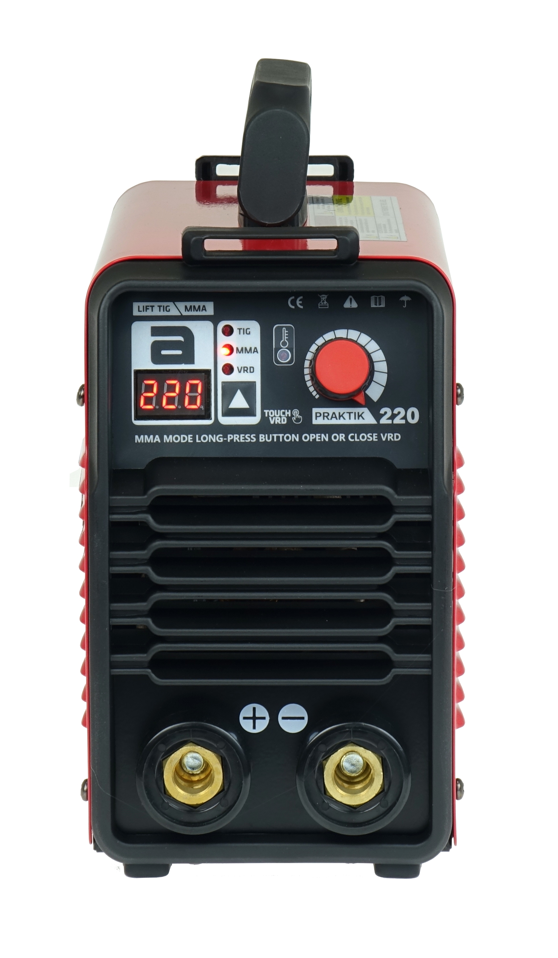 PRAKTIK 220 jest spawarką inwertorową do spawania metodą MMA elektrodą otuloną prądem stałym (DC) oraz metodą TIG prądem stałym (DC) ze zwarciowym zajarzeniem łuku. Umożliwia spawanie elektrodami rutylowymi, zasadowymi, do stali nierdzewnej i żeliwa.