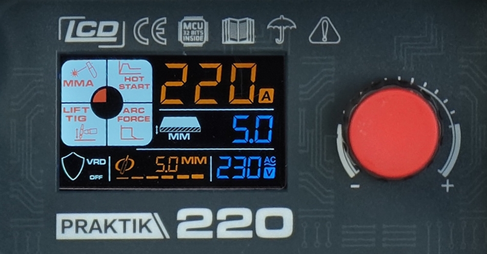 Czytelny wyświetlacz LED umożliwia dokładną regulację urządzenia, zapewnia stabilne parametry i wysoką jakość spawania.