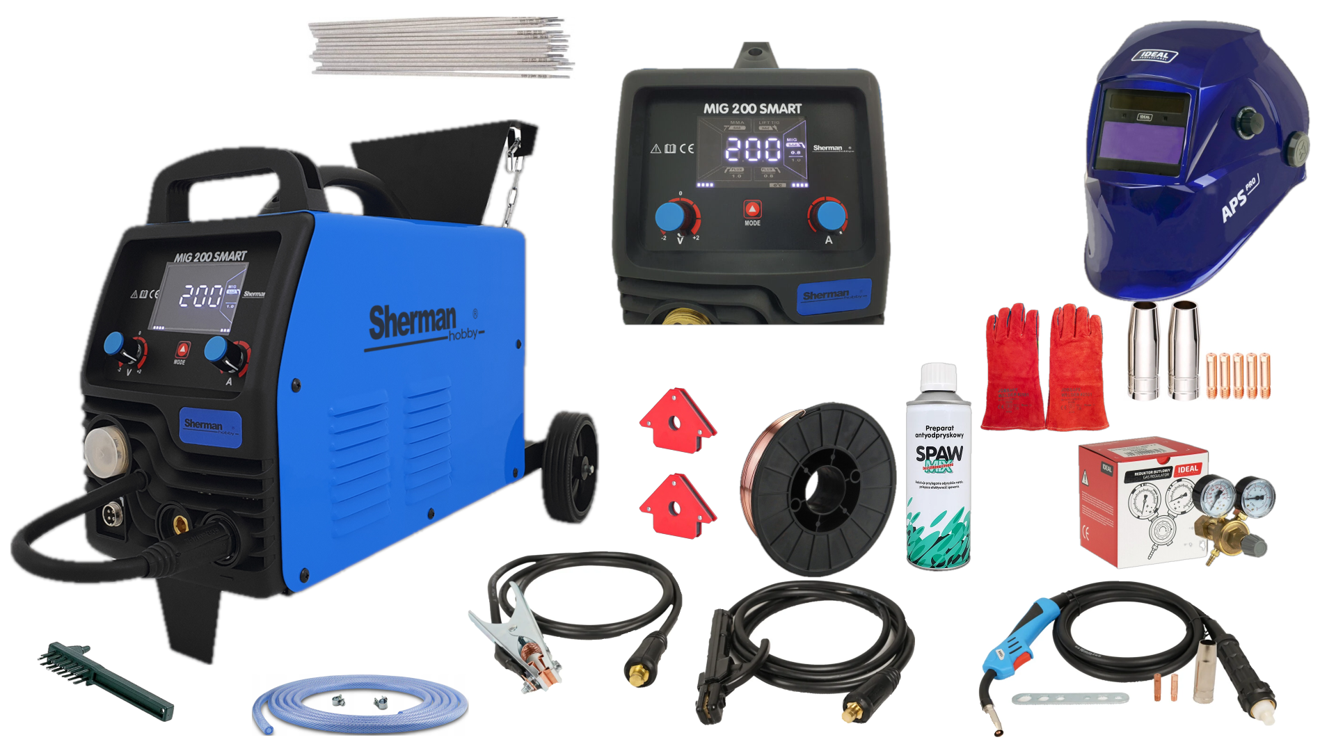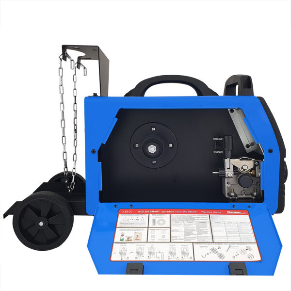 Synergiczna spawarka MIG 200 SMART służy do spawania ręcznego stali. To bardzo proste w obsłudze urządzenie umożliwiające spawanie metodami MMA (elektrodą otuloną), TIG Lift, oraz MIG/MAG w trybie synergicznym. Dzięki zmianie polaryzacji urządzenie pozwala spawać metodą MIG/MAG z zastosowaniem zarówno standardowych drutów w osłonie gazów ochronnych jak i samoosłonowych drutów proszkowych.