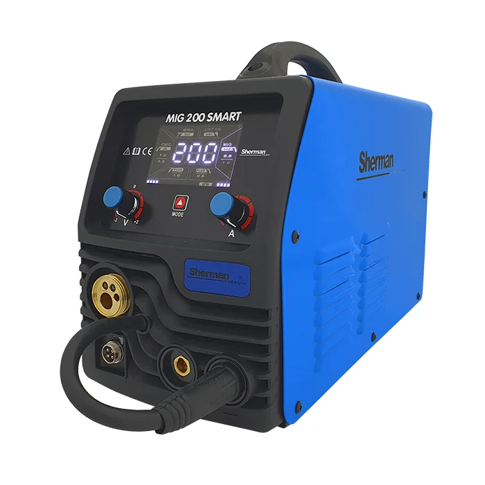 Synergiczna spawarka MIG 200 SMART służy do spawania ręcznego stali. To bardzo proste w obsłudze urządzenie umożliwiające spawanie metodami MMA (elektrodą otuloną), TIG Lift, oraz MIG/MAG w trybie synergicznym. Dzięki zmianie polaryzacji urządzenie pozwala spawać metodą MIG/MAG z zastosowaniem zarówno standardowych drutów w osłonie gazów ochronnych jak i samoosłonowych drutów proszkowych.