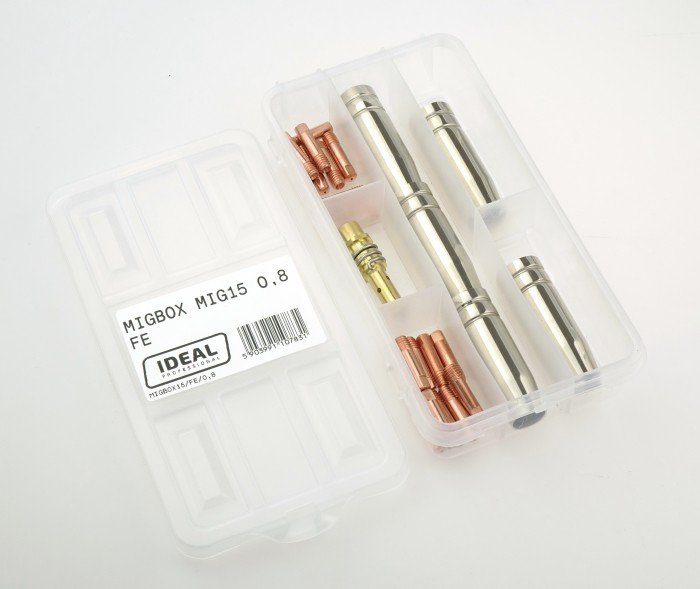 Zestaw migbox zawiera zestaw części eksploatacyjnych do uchwytu MIG MB 15